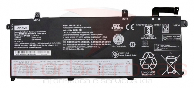 Bateria Lenovo ThinkPad T14 Gen 1 11.52V 48.96Wh 4350mAh Compativel