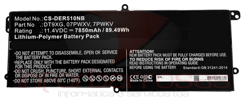 Bateria Alienware 11.4V 7850mAh 89.49Wh Compativel